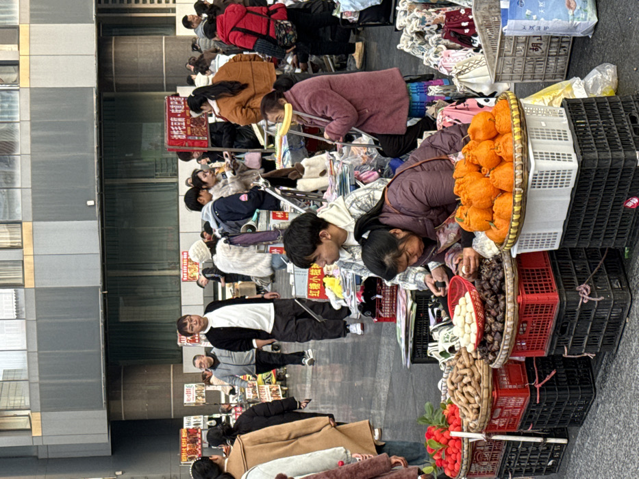 - "This image depicts an active outdoor market scene in Yuzhong District, China, positioned in front of a modern building featuring a gray and dark paneled facade with reflective windows" by FM-ZX7hz1, licensed under CC BY 4.0