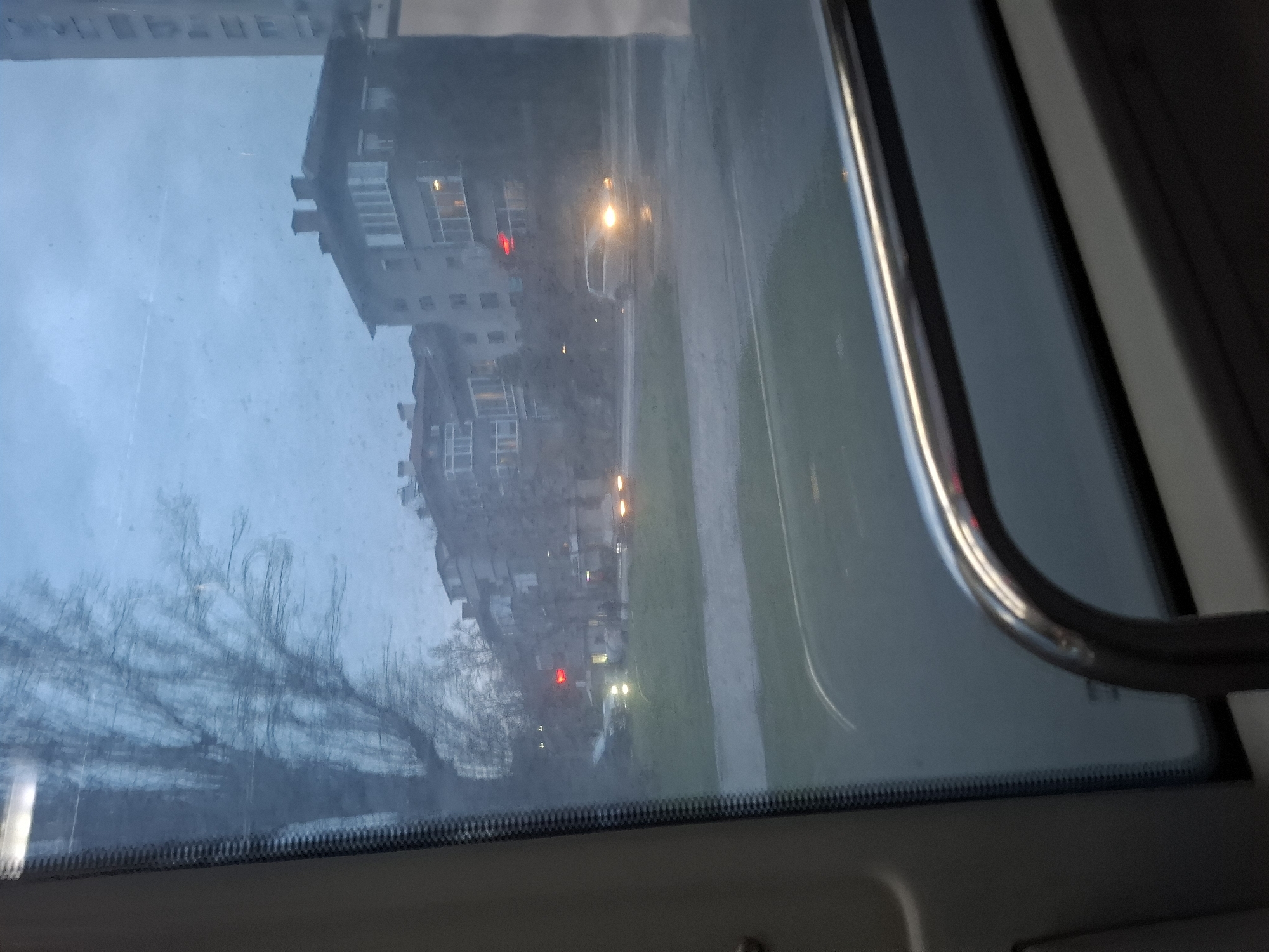 - "The image depicts an urban street scene in Plovdiv, Bulgaria, viewed from within a structure, likely a public transport vehicle, through a rain-streaked window pane" by FM-A6stU2, licensed under CC BY 4.0