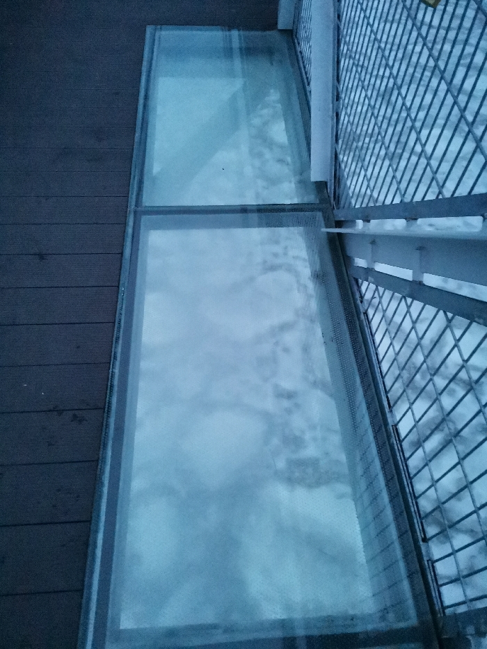 - "The image displays an overhead, downward-angled view of a section of an outdoor glass-bottomed walkway or bridge, situated in Мастоўскі сельскі Савет, Belarus" by FM-O7DDu2, licensed under CC BY 4.0