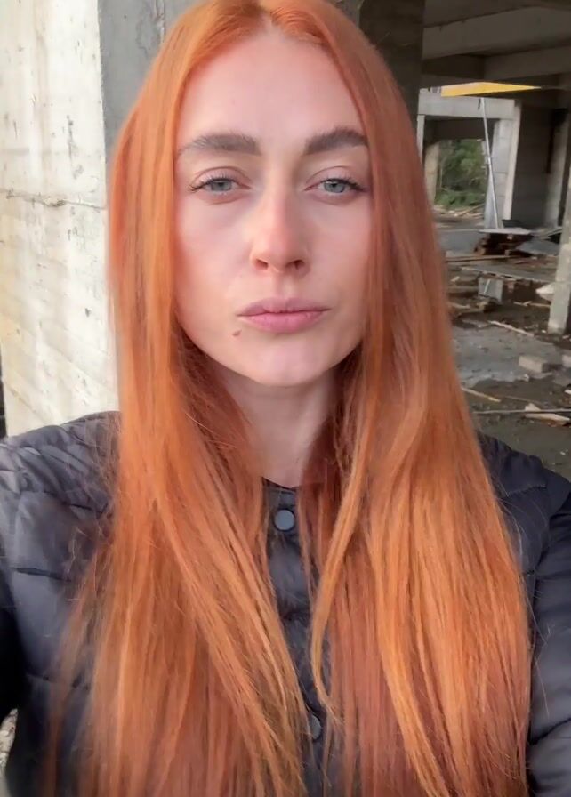 - "A woman with long, red hair and blue eyes is taking a selfie video in what appears to be an unfinished building or construction site" by FM-tWRQa2, licensed under CC BY 4.0