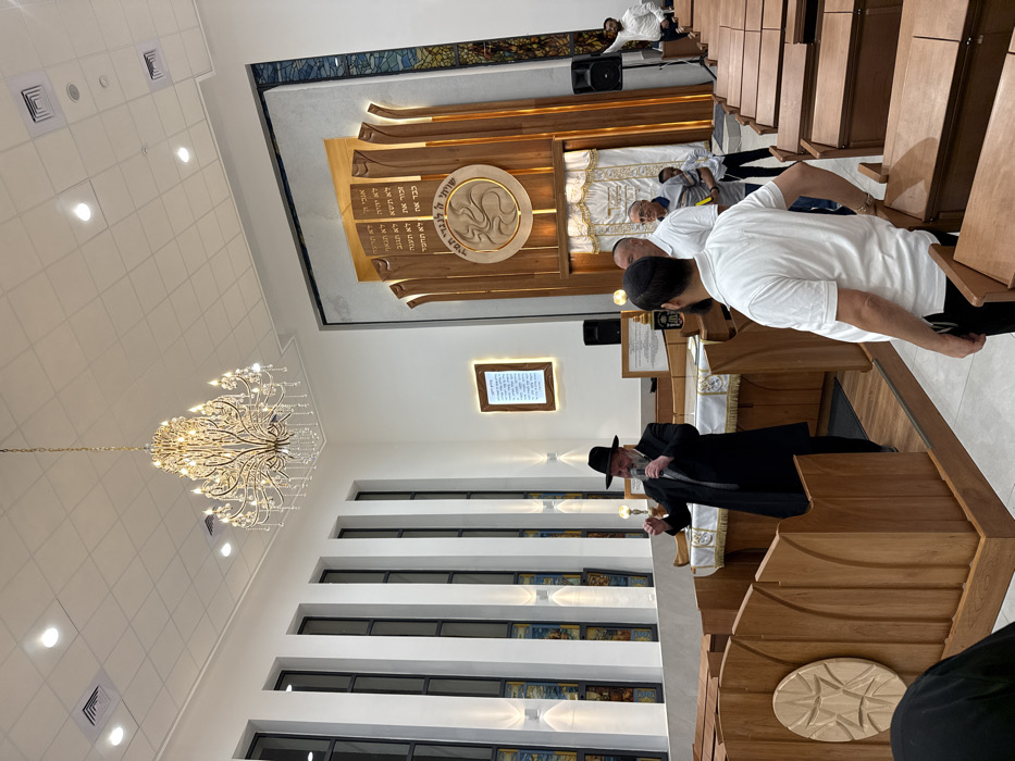 This image depicts the interior of a modern synagogue located in Beer Yaaqov, Israel