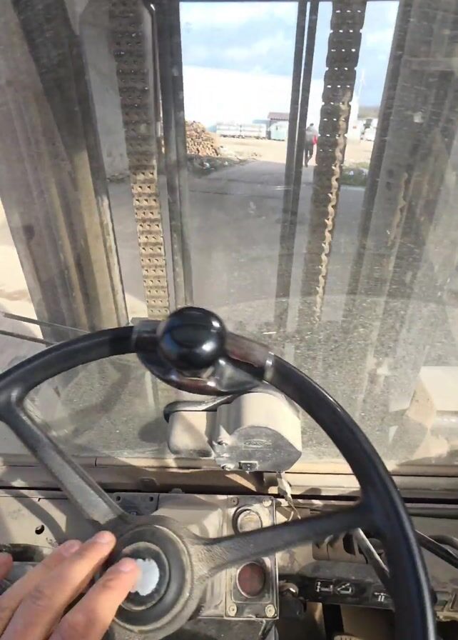 first-person perspective from inside a forklift or similar heavy machinery