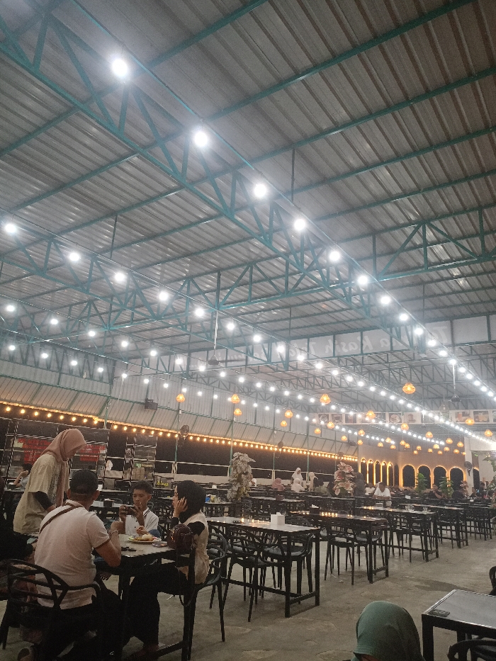 The scene depicts a large, high-ceilinged indoor or covered open-air dining establishment located in Matangjareung, Indonesia