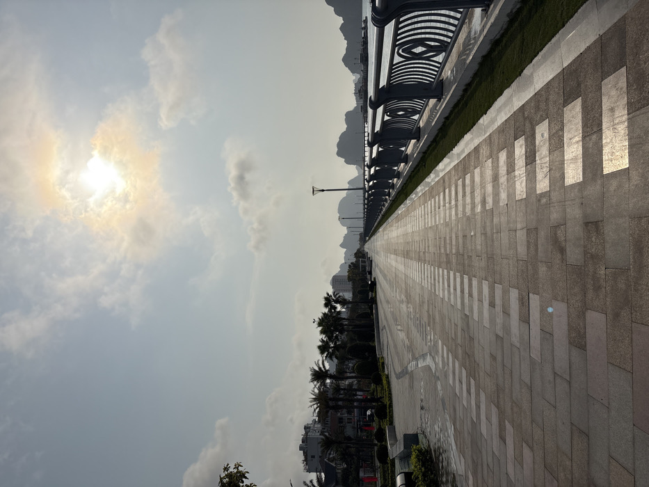 - "The image displays a wide, paved waterfront promenade in Ha Long Ward, Vietnam, extending into the distance under a partly cloudy sky with a visible, bright sun creating a halo effect" by FM-Ju5AS2, licensed under CC BY 4.0