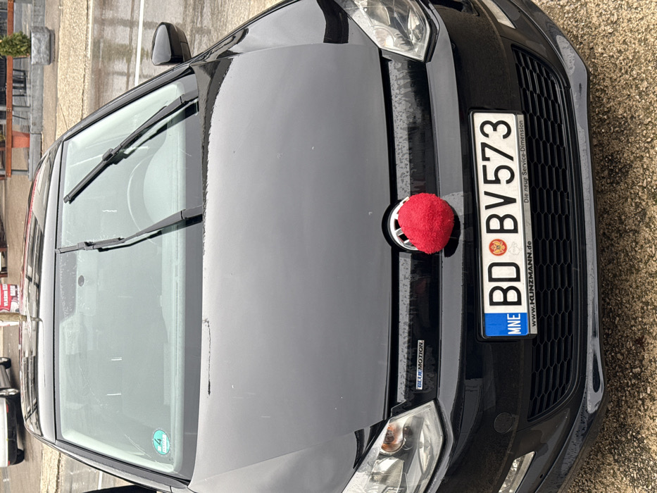 A black Volkswagen Polo hatchback is depicted from a front-quarter view, parked in an outdoor, paved area within Bijela, Montenegro