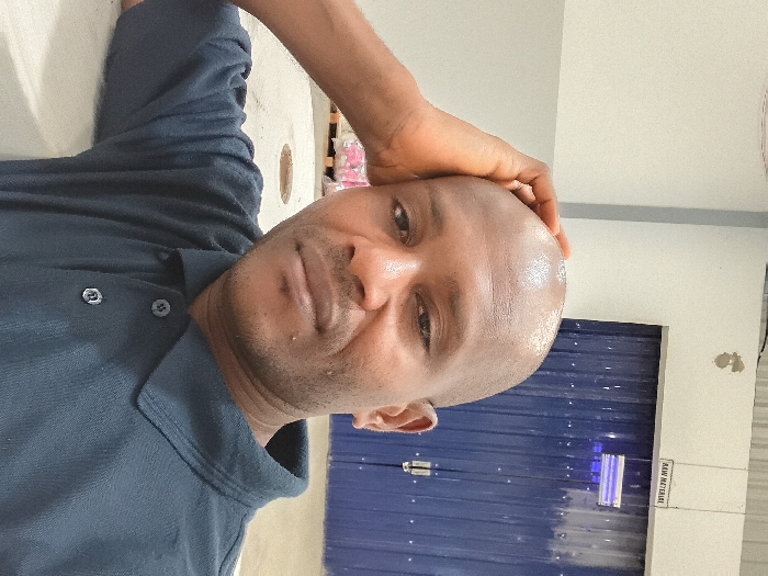 The image depicts an adult male of apparent African descent, situated indoors within what appears to be an industrial or storage facility in Shagamu, Nigeria