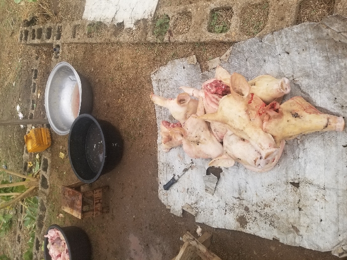- "scene of butchering pig heads in an outdoor area" by FM-ycer72, licensed under CC BY 4.0