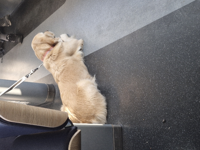 - "The scene depicts a light-colored Golden Retriever-type canine recumbent on its abdomen within a public transport carriage in Hofheim am Taunus, Germany" by FM-WNeXD3, licensed under CC BY 4.0