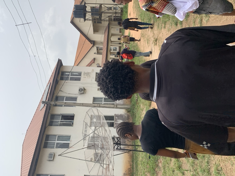 The scene depicts an outdoor view within Ihiagwa, Nigeria, likely on an institutional campus