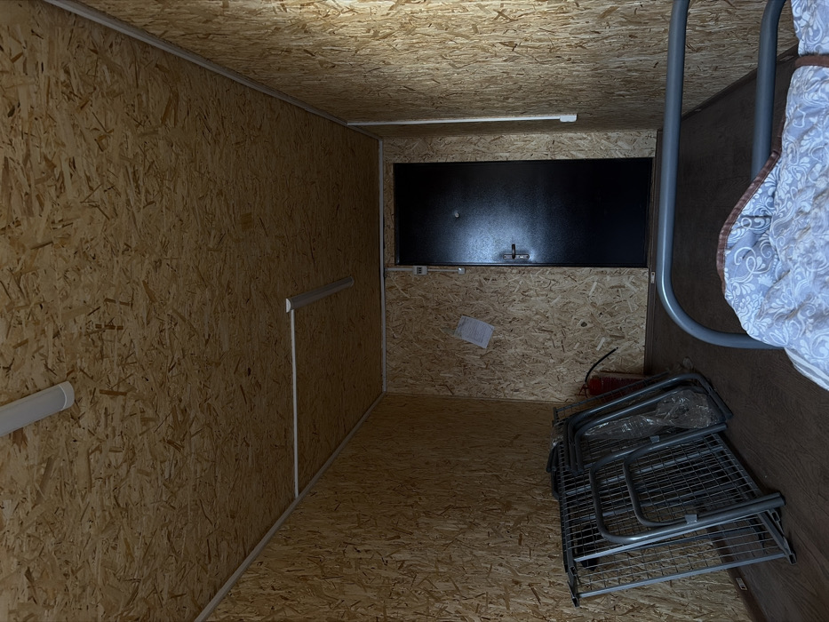 - "An interior shot shows a small, enclosed space with walls, floor, and ceiling covered in wood chipboard" by FM-FZBdJ2, licensed under CC BY 4.0