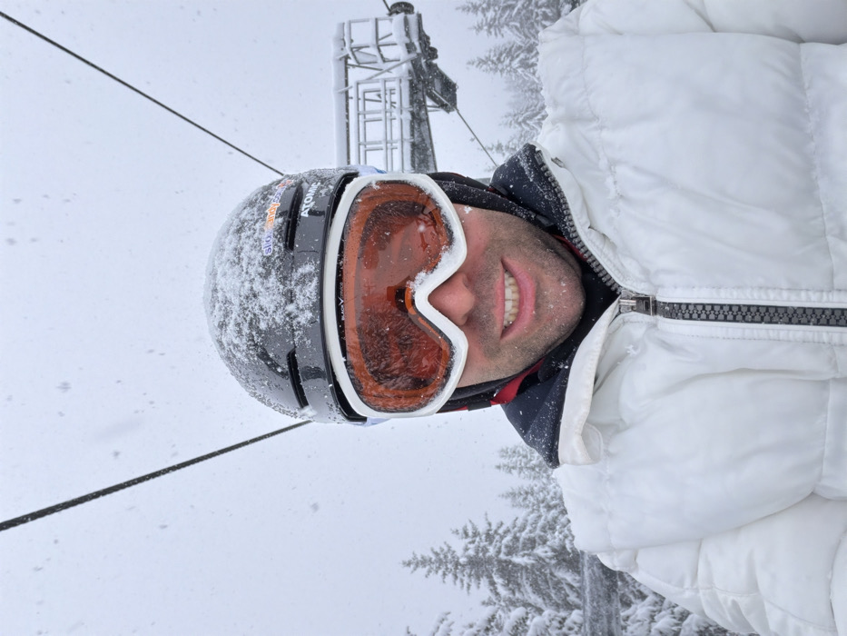 - "An adult male is depicted in a close-up, chest-up selfie, seated on a ski lift during heavy snowfall in Les Allues, France" by FM-PcEqo1, licensed under CC BY 4.0