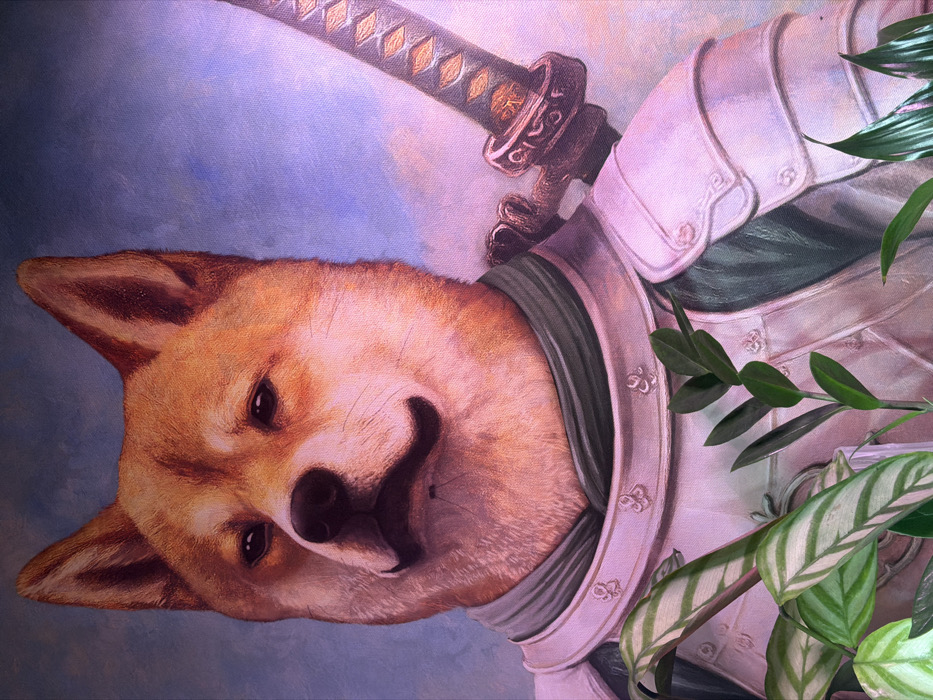 - "This image, photographed in Priseltsi, Bulgaria, displays a vertical portrait painting of a Shiba Inu dog" by FM-nfS452, licensed under CC BY 4.0