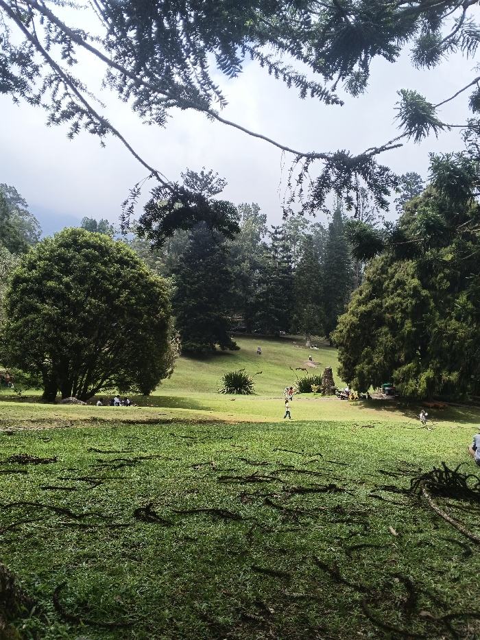- "The scene depicts a panoramic view within Godawari Botanical Garden in Lalitpur, Nepal, characterized by a vast, gently sloping expanse of green lawn under an overcast sky partially obscured by the dark foliage of overhead tree branches" by FM-1Rqoh1, licensed under CC BY 4.0