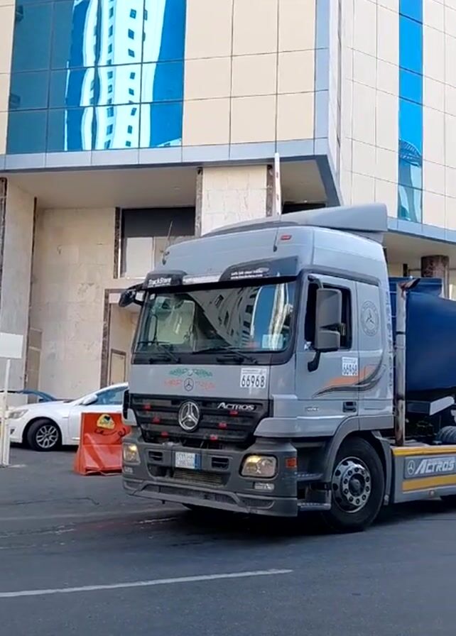 - "Here's a detailed description of the video: The video shows a gray Mercedes-Benz Actros truck parked on a street in front of a modern building" by FM-ttalh2, licensed under CC BY 4.0