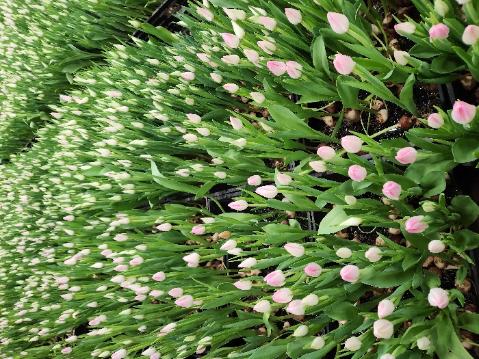 - "The scene displays a large-scale indoor cultivation of unbloomed tulips, likely a commercial greenhouse or nursery in Unknown, Unknown" by FM-SsS1A3, licensed under CC BY 4.0