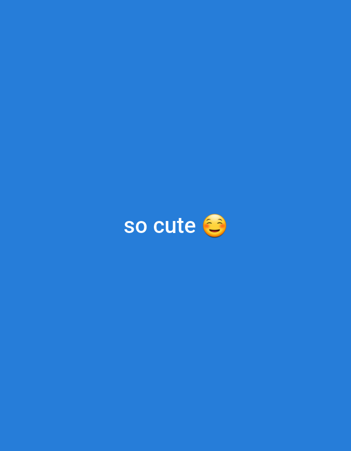 The image displays a solid, uniform blue background. Centered horizontally and vertically within this field is white sans-serif text reading "so cute," immediately followed to its right by a yellow digital emoji depicting a smiling face with closed, upturned eyes and rosy cheeks. No people, physical subjects, objects (other than the digital text and emoji), actions, or interactions are visible. The environment depicted is an abstract digital color field; no specific physical location, including Al-Muhajerin Municipality, Syria, or any topographical or architectural features are represented.