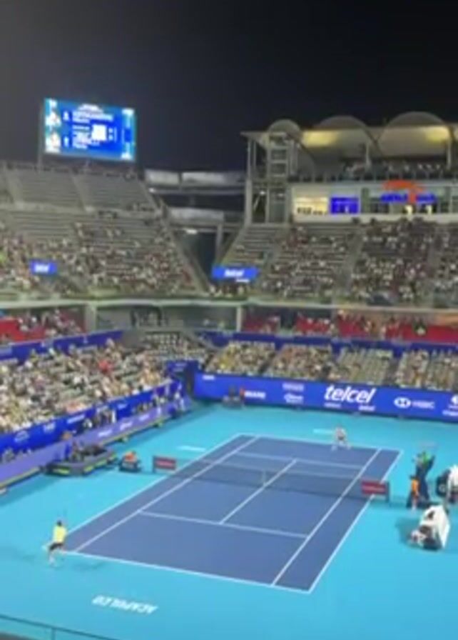 professional tennis match in progress at night