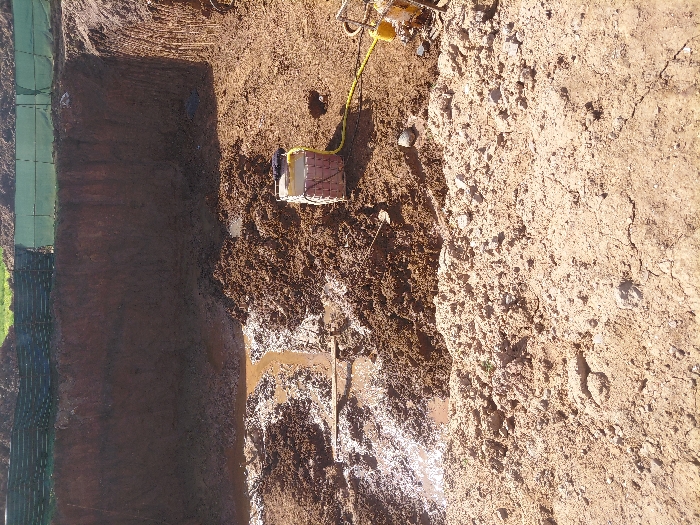 The image displays an excavated pit at a construction site in Sidi Moussa Ben Ali, Morocco
