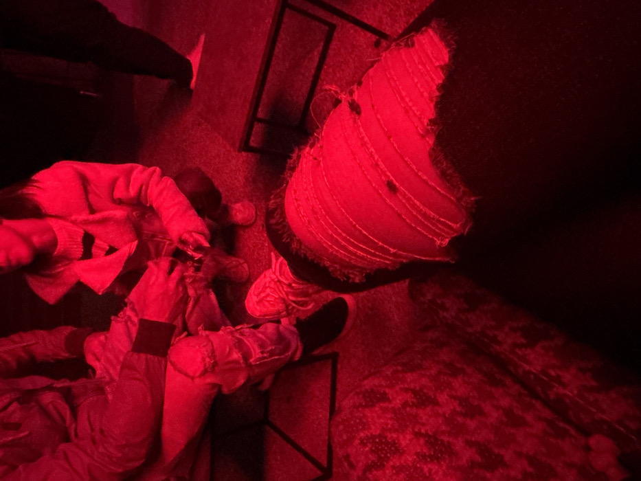 - "The scene depicts an indoor gathering of at least four individuals under strong red lighting" by FM-XhlIW2, licensed under CC BY 4.0