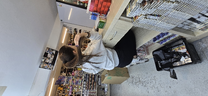- "An interior scene within a retail establishment, identified as located in Silistra, Bulgaria, depicts a female individual seated behind a counter, viewed from the back and right side" by FM-dWbHW2, licensed under CC BY 4.0