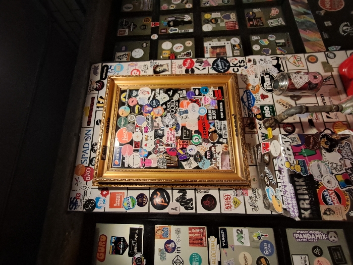 - "The image displays a densely stickered interior wall within a dimly lit space" by FM-pw46T2, licensed under CC BY 4.0