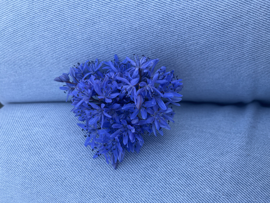 - "A close-up image captures a cluster of vibrant blue flowers, approximately 7-8 cm in diameter, resting on light blue denim fabric" by FM-qWCtw1, licensed under CC BY 4.0