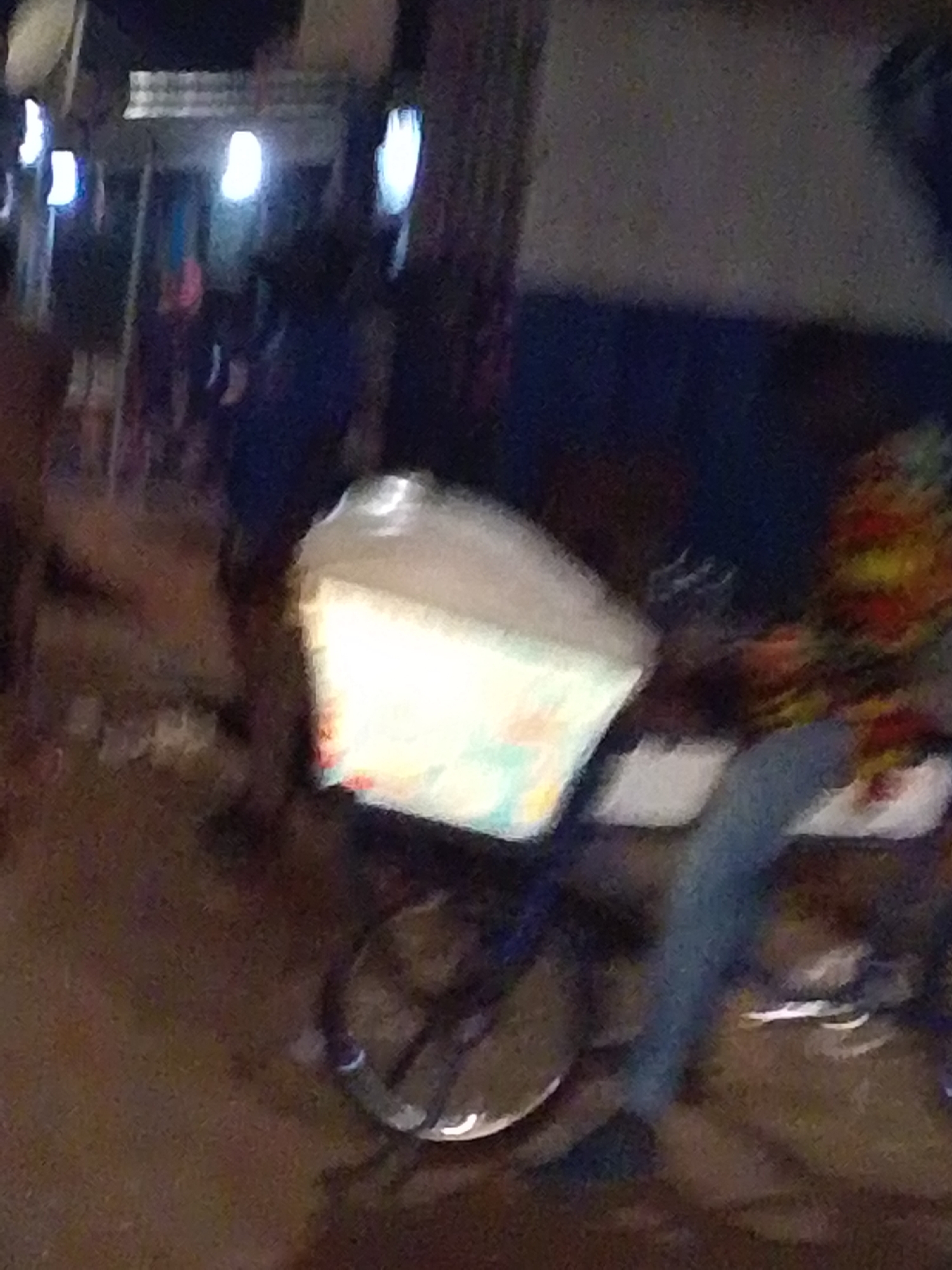 A poorly lit image shows a bicycle cart with a bright white cover located on what appears to be a street in Tamale, Ghana