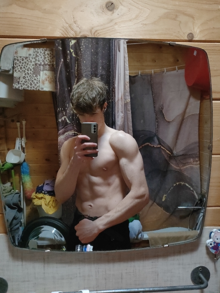 - "A shirtless man with a muscular physique takes a selfie in a bathroom mirror" by FM-jApwm1, licensed under CC BY 4.0