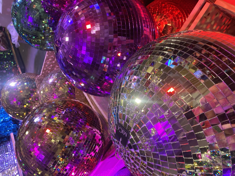 - "The image depicts a close-up view of multiple disco balls displayed in what appears to be a retail or commercial setting in Mouscron, Belgium" by FM-xTDQG2, licensed under CC BY 4.0
