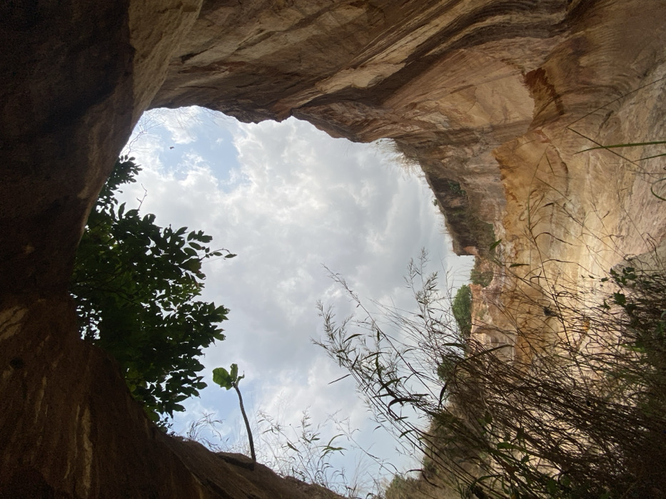 - "The image depicts a natural landscape in Amoso, Nigeria, viewed from within an overhead rock or earth formation" by FM-6XMFv1, licensed under CC BY 4.0