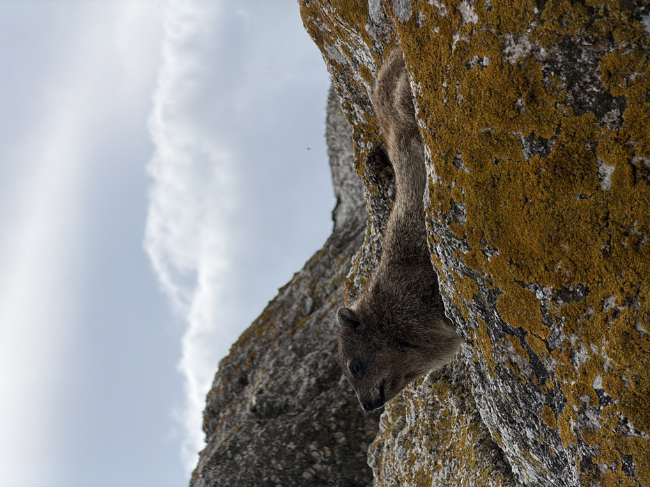 - "An outdoor scene in Simon's Town, South Africa, depicts a rock hyrax (Procavia capensis) resting on a rock formation under an overcast sky" by FM-tYDL83, licensed under CC BY 4.0