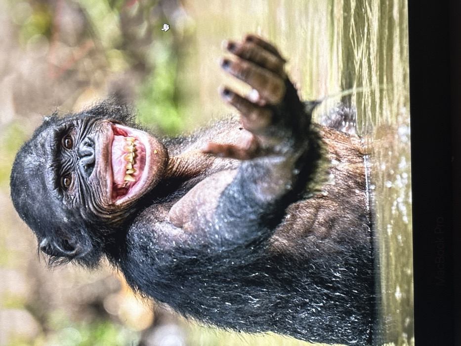 - "A smiling bonobo is partially submerged in water" by FM-5oJwf2, licensed under CC BY 4.0