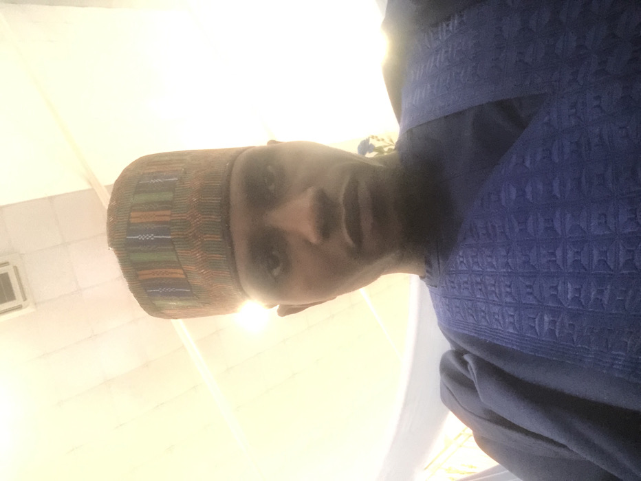 The image depicts a close-up, low-angle indoor portrait of a dark-skinned male individual in Barakin Lerawi, Nigeria