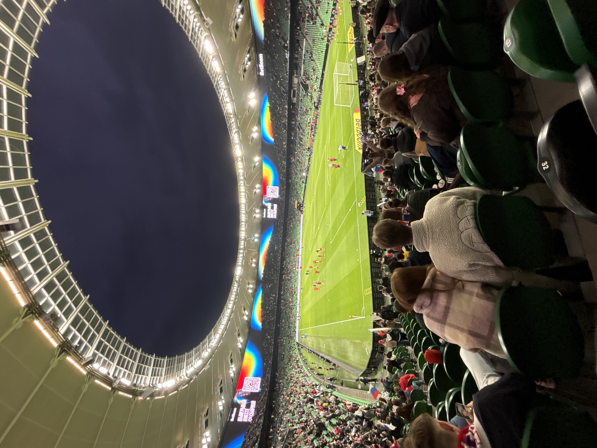 This image captures an evening scene inside Krasnodar Stadium in Krasnodar, Russia