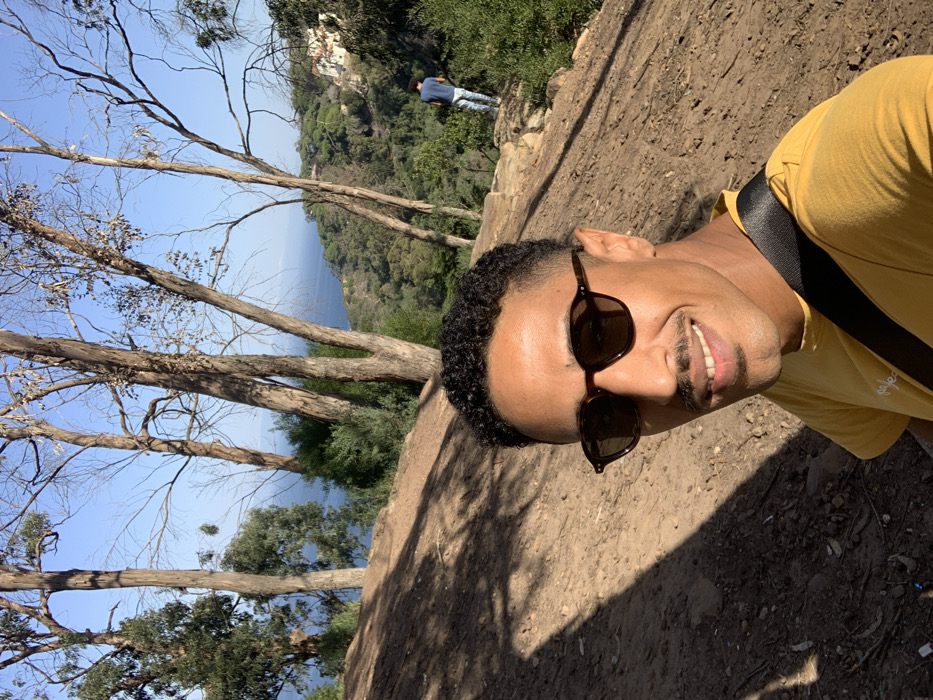 - "A male subject with light brown skin, dark curly hair, and a mustache occupies the lower right foreground, wearing dark-framed sunglasses and a yellow short-sleeved t-shirt with a dark strap across his right shoulder" by FM-db0142, licensed under CC BY 4.0