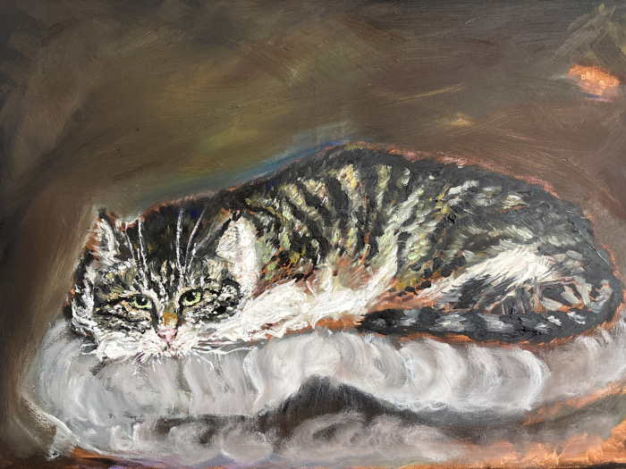 - "This image is an oil painting depicting a domestic cat resting" by FM-PAz8K2, licensed under CC BY 4.0