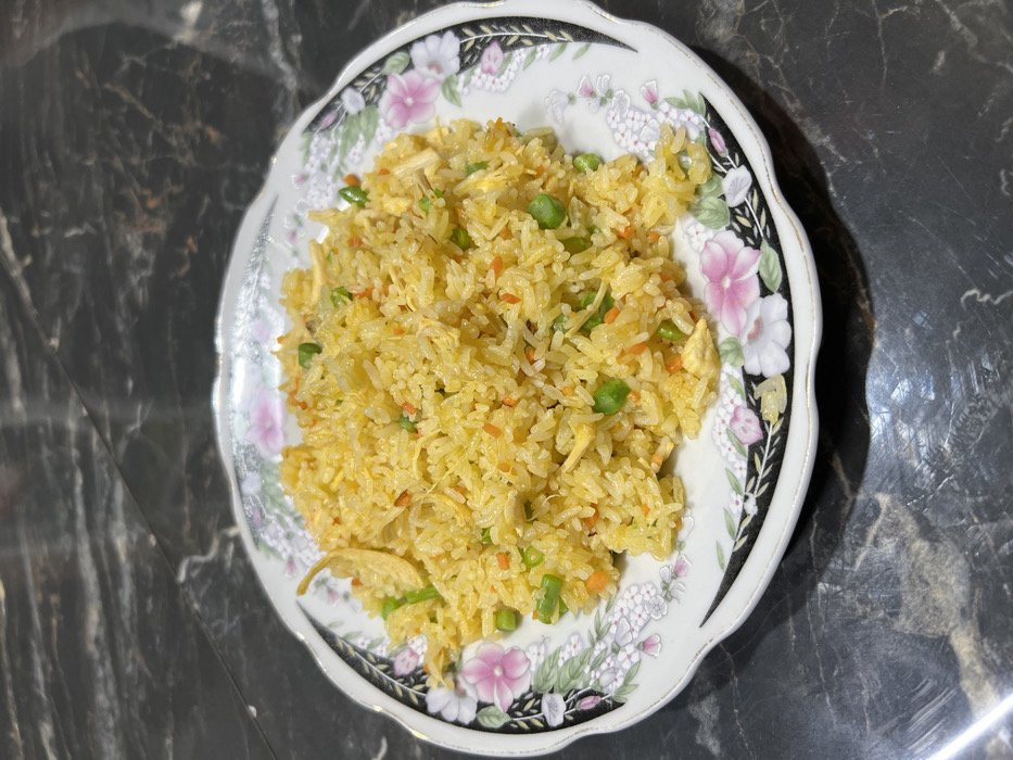 - "The scene depicts a plate of fried rice positioned centrally on a dark, reflective table surface, captured indoors in Nha Trang, Vietnam" by FM-gZMgt2, licensed under CC BY 4.0