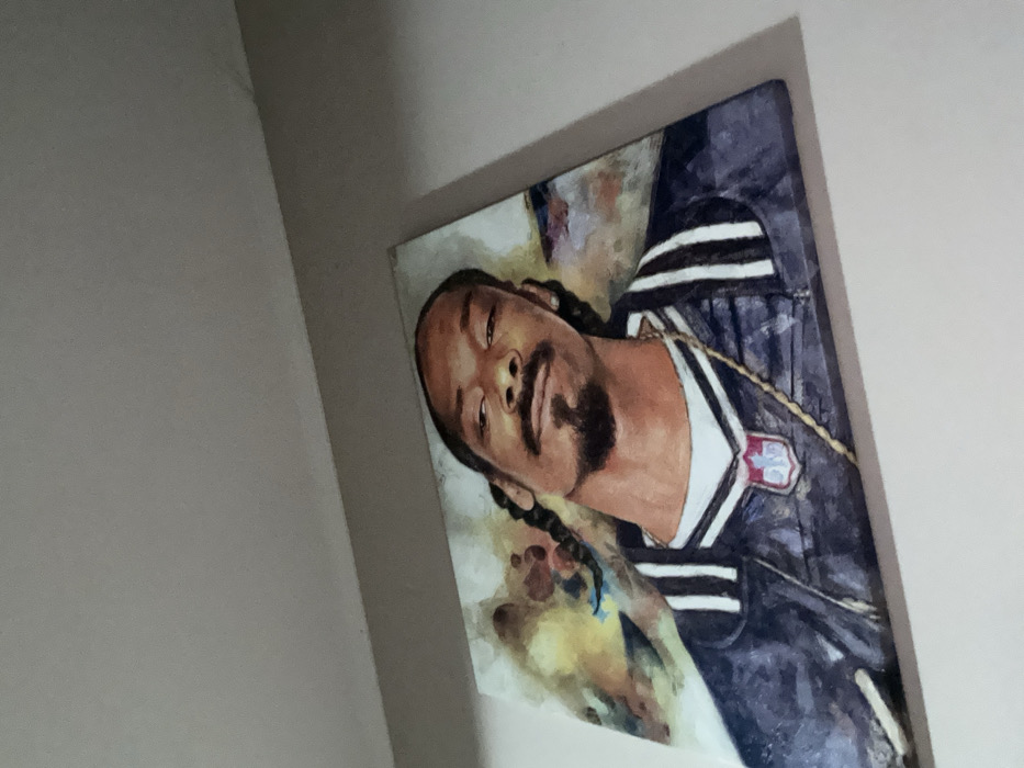 - "An indoor scene in Aheloy, Bulgaria, features a wall-mounted portrait of musical artist Snoop Dogg" by FM-LHe1m2, licensed under CC BY 4.0