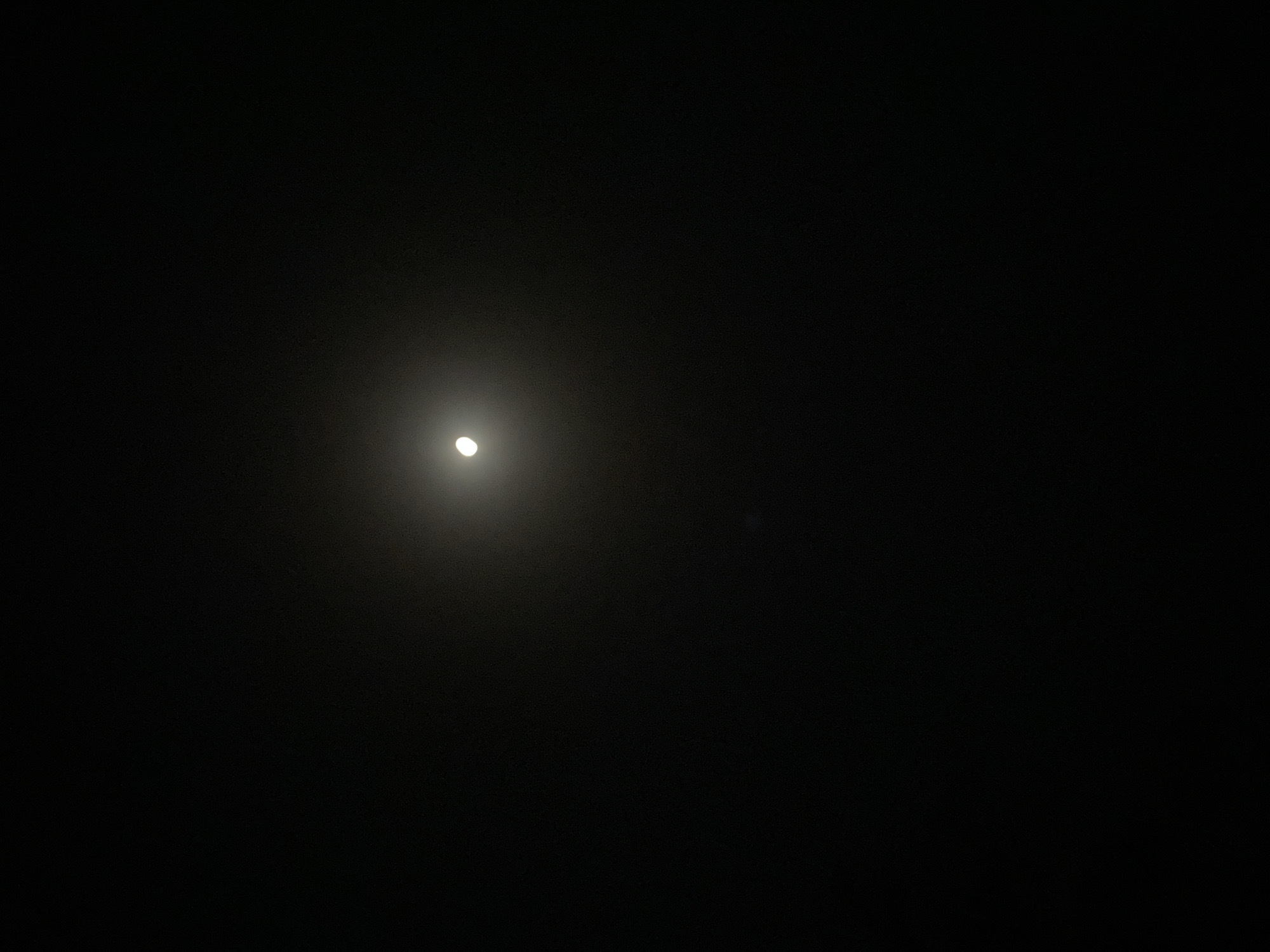 A nighttime scene. A faint, partially obscured moon hangs in the center of a dark sky. The image appears to be taken outdoors in an environment with low light. There are no indications of a city or people. The image does not contain enough information to determine the location as Barden Yana, Nigeria.