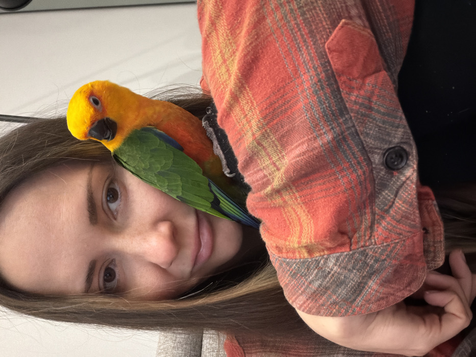 - "A close-up image depicts a female individual and a bird in an indoor setting in Khimki, Russia" by FM-e1BLf2, licensed under CC BY 4.0
