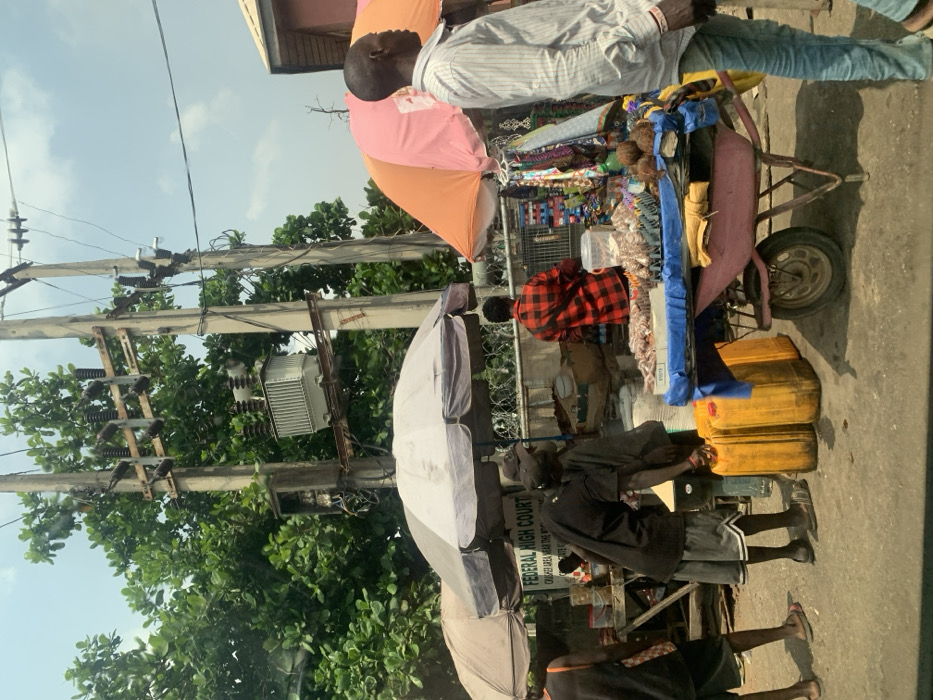 The image displays an outdoor commercial scene in Adankolo, Nigeria, specifically near the Federal High Court in the Crusher Area