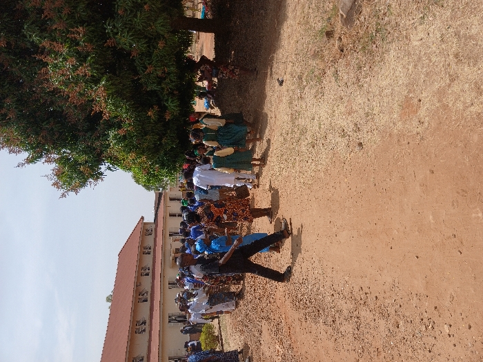 The image depicts an outdoor gathering in Pankshin, Nigeria, under daylight conditions
