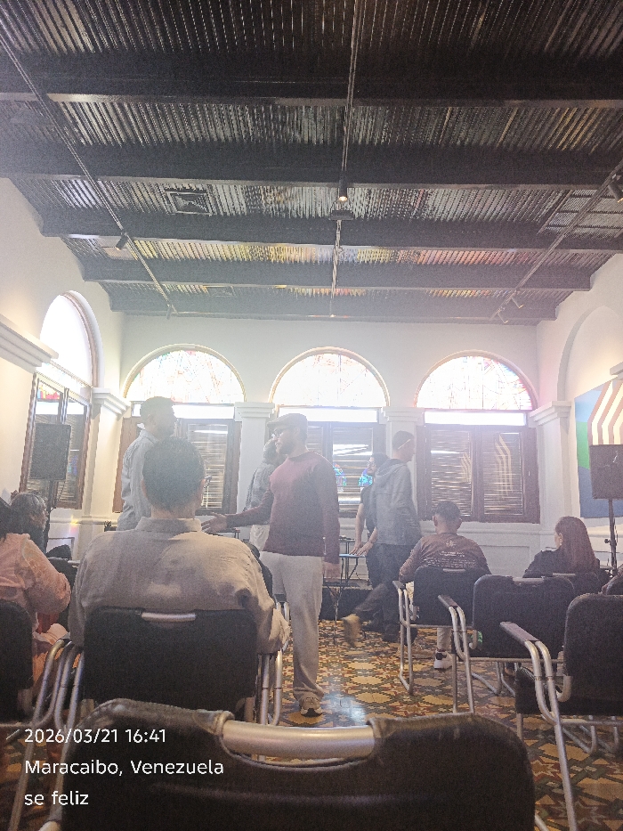 The image depicts an indoor gathering in Maracaibo, Venezuela, on March 21, 2026, at 16:41