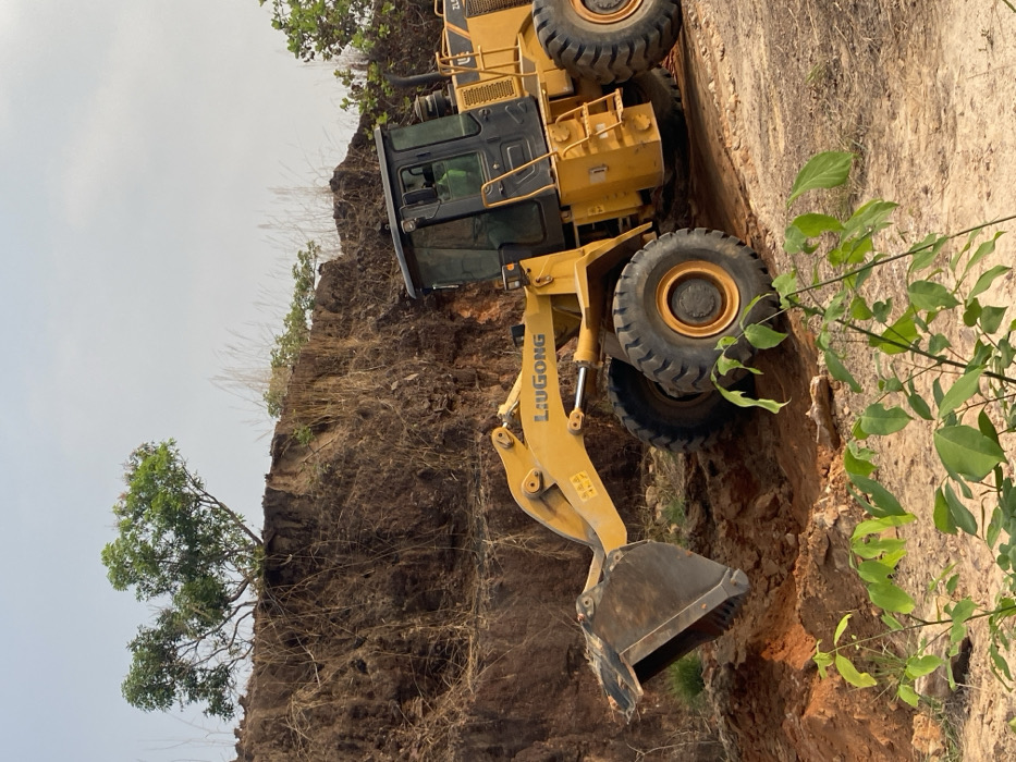 - "An overhead-angled photograph captures a construction scene in Achara, Nigeria, featuring a large yellow LIUGONG ZL50 front-end loader positioned on a dirt incline" by FM-6XMFv1, licensed under CC BY 4.0