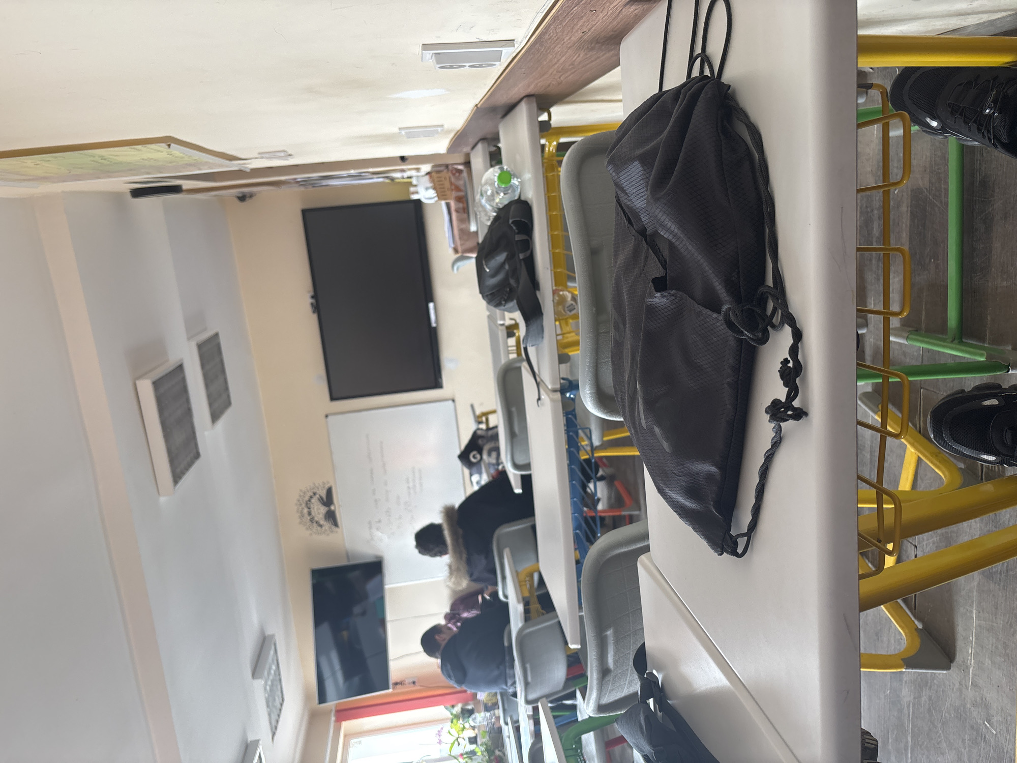 The image depicts an interior view of a classroom in Sofia, Bulgaria