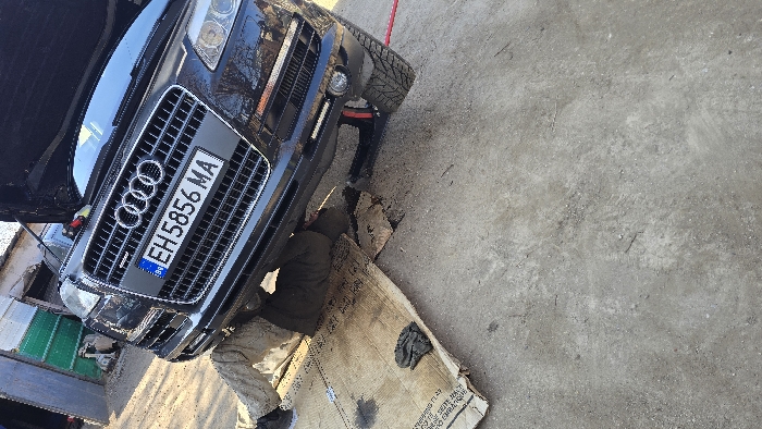 The image captures an outdoor automotive repair scene in Milkovitsa, Bulgaria