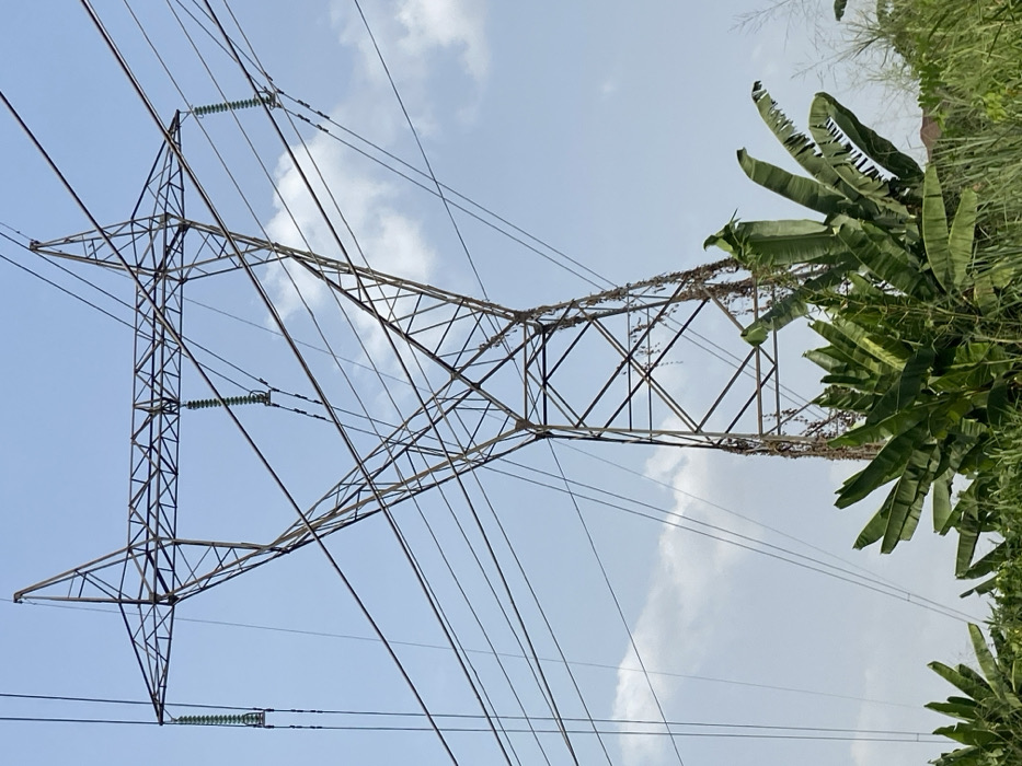 - "The image displays a weathered lattice steel electricity transmission tower prominently situated against a light blue sky with scattered white clouds" by FM-tWINy1, licensed under CC BY 4.0