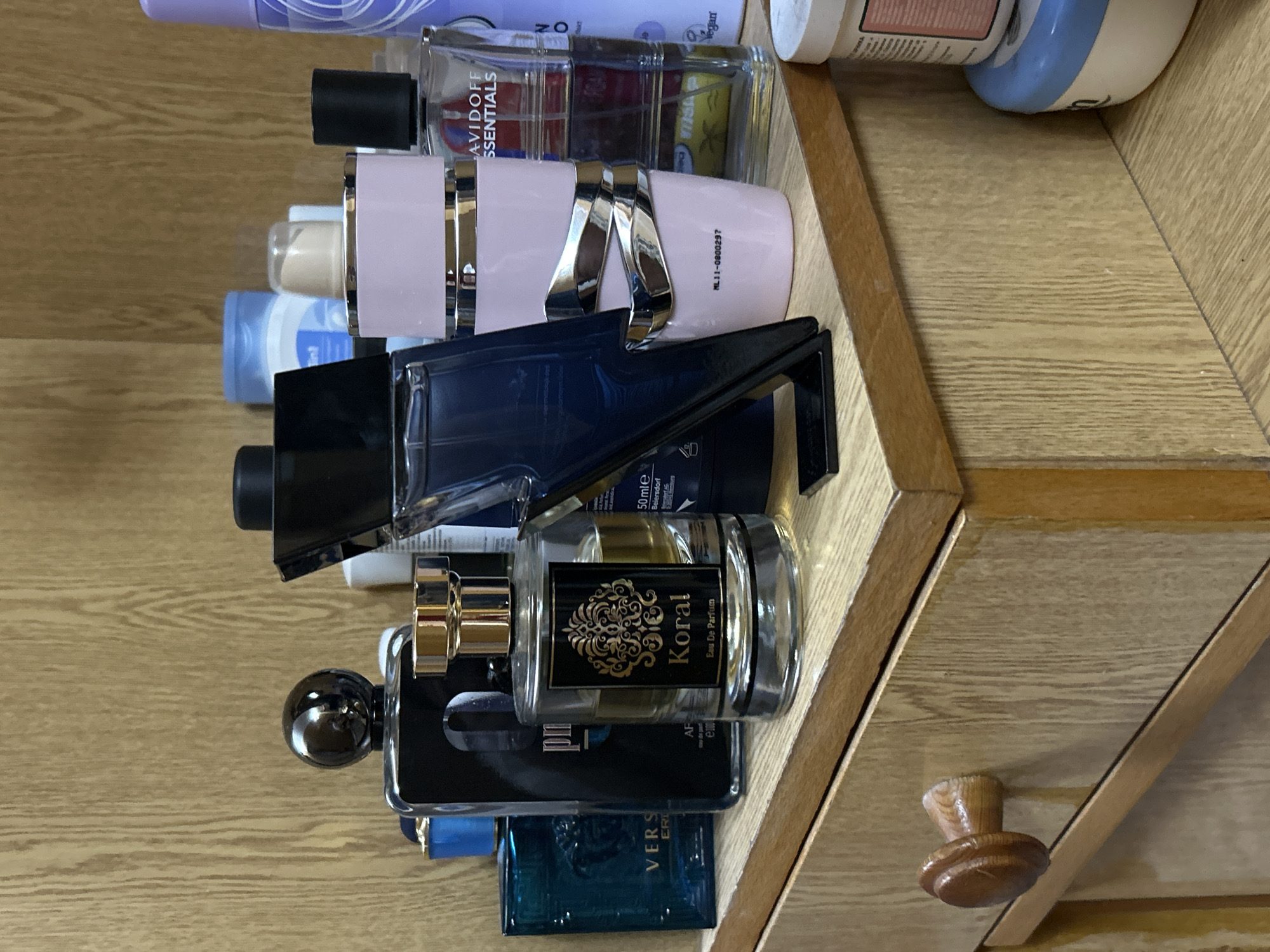 - "cluttered drawer containing several perfume bottles and other personal care products" by FM-ZTQZg2, licensed under CC BY 4.0