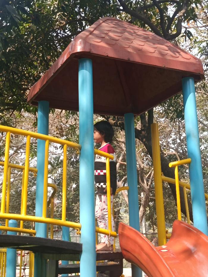 - "A young child stands on a platform of a brightly colored playground structure" by FM-1YwHv2, licensed under CC BY 4.0