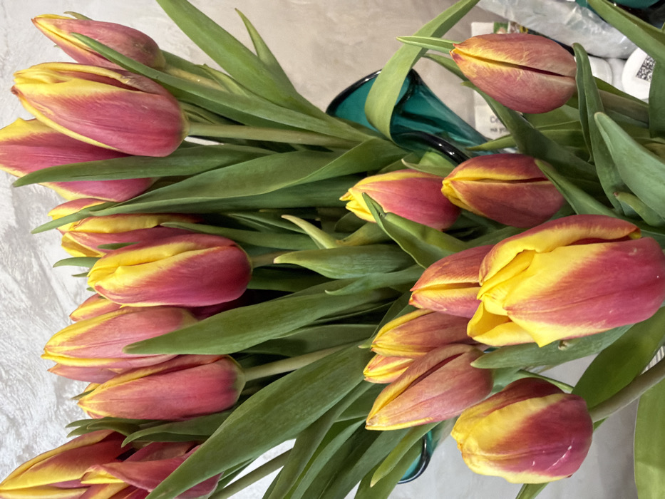 - "The image displays a large, vertically oriented bouquet of approximately 25-30 bicolored tulips" by FM-dJ01l1, licensed under CC BY 4.0